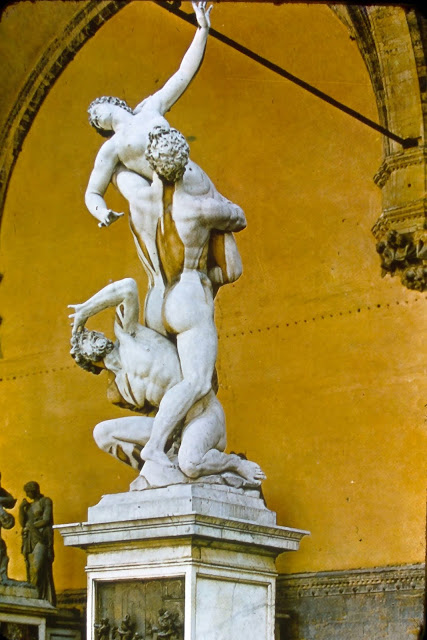 Del Duomo a la plaza della Signoria y allí estaban David, Perseo, Neptuno… y una torre que parece interminable en vertical. El ambiente precioso, gente pintando y vendiendo acuarelas. La galería de los Uffizzi excesiva, no puedes saborearla, si te recreas en la familia Julio-Claudia que están a lo largo de los pasillos, llegas tarde al Veronés, Correggio, Botticelli, es impresionante. Lo mismo que Rafael. La galería se merece unos quince días, pero lo que vi lo disfruté mucho, a pesar del horrible dolor de pies y el calor.