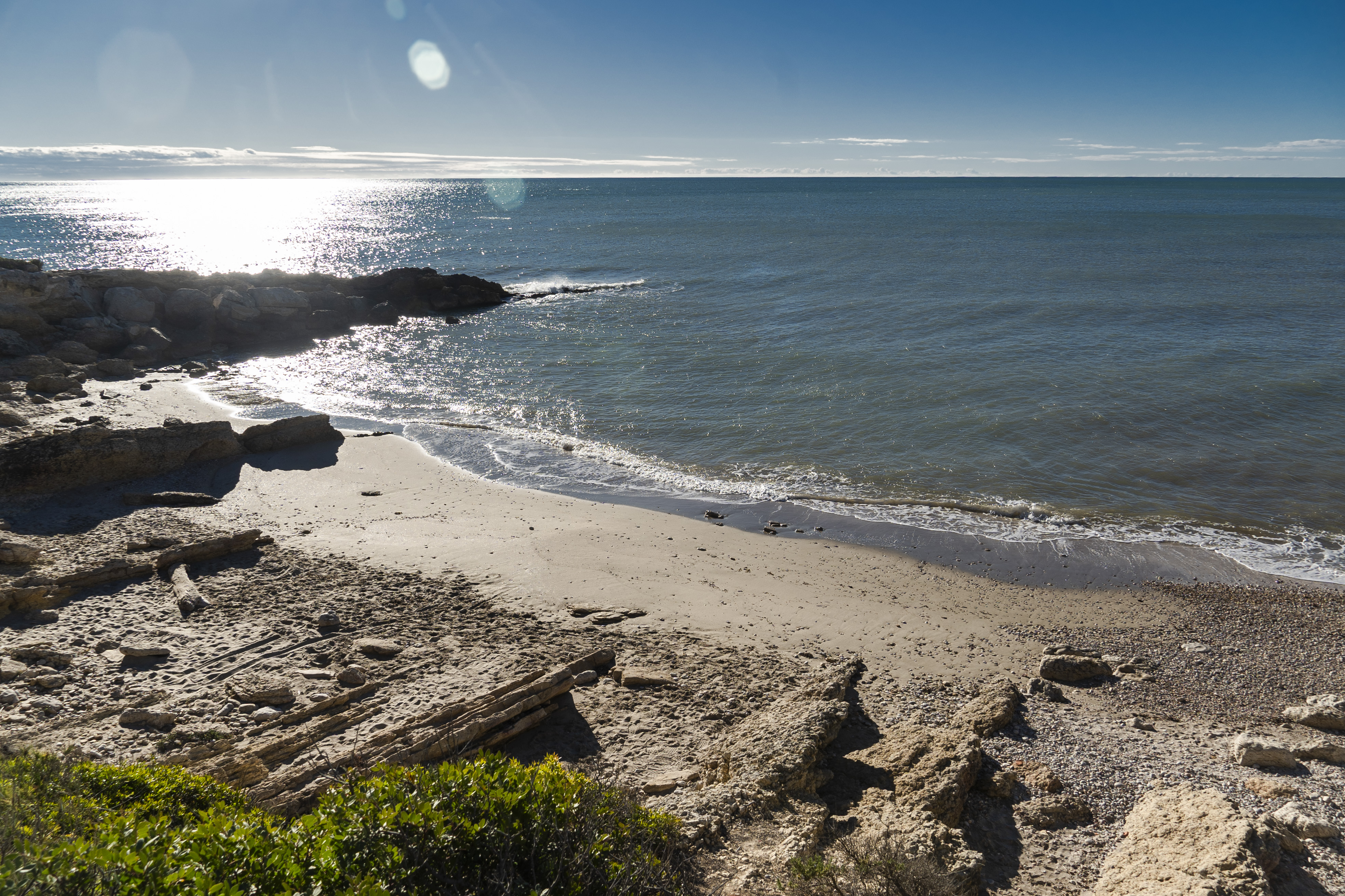 calita, Cala Mundina, ya en el parque natural de la sierra de Irta. Paisaje de