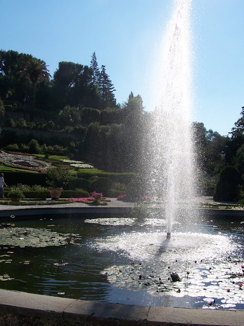 La primera villa está en Collodi, donde nació el autor de Pinocho, en el pueblo hay un parque infantil sobre Pinocho. La villa que vamos a ver es la Villa Garzoni y el pueblo de Collodi está apiñado en línea por encima de la Villa. Nos acercamos, pagamos siete euros y vemos que está en restauración, es del Settecento, los jardines cuando los terminen quedarán muy bien, aunque son pequeños, la cascada es muy alta, las esculturas están en malas condiciones y no podemos entrar en el interior, hasta no haber terminado la restauración no deberían cobrar tanto.