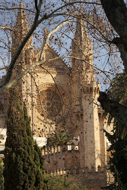 Bajamos por unas escaleras al puerto y anduvimos desde Es Baluard, la fortaleza Museo hasta la Almudaina pasando por la Lonja, una maravilla gótica con una plaza delante muy bonita.