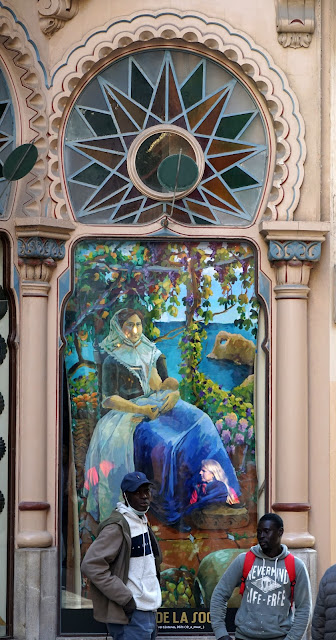 Por la tarde hemos paseado por la Plaza Mayor, el carrer dels Argenters, los plateros, el carrer del Call (el barrio judío) y en el Paseig del Born, donde están las tiendas más exclusivas cotilleamos Vuiton, Escada, Bulgari, etc. La calle tiene casas preciosas entre modernistas y eclécticas muy de principios del XX, y antiguos palacios como Ca Rossellic y también un paseo en el centro a la manera de un boulevard. Hay tiendas antiguas que conservan los letreros. Llegando arriba está la calle de Jaume III, hacemos compras